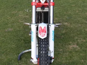 Gabelbrücke, Felgen, Naben in Rot lakiert.