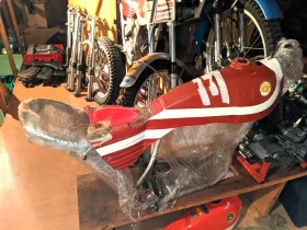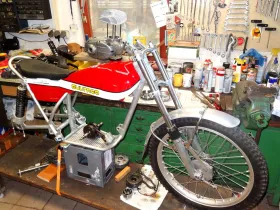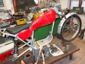 Steht seit Jahren in der Garage - Motor dreht frei und hat bis zuletzt tadellos funktioniert - sollte einwandfrei sein. Ein wenig Rost an den unbeschichteten Stahlteilen ( z.B. Bremsscheiben- kann aber denke ich unproblematisch weitervenutzt werden) Reifen und Kette gehört getauscht - alles in allem aber überschaubar .....war nie zugelassen.