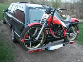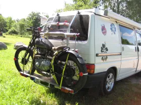 Das sah man in den 70/80 Jahre öfters. Auch selbst gebaute Heckträger waren üblich. Die Physik war damals anscheinend etwas anders als heute. Heute würde keine der Konstruktionen durch den TÜV kommen😂