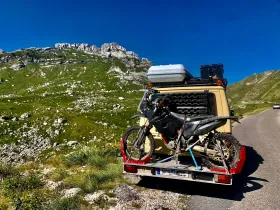 Hintergrund der Suche ist, ich bin viel offroad auf Reise und damit ich die Enduro, oder auch den Trialer da sicher mitnehmen kann und auch genügend Bodenfreiheit behalte, war mir der Tialporter ins Auge gesprungen, vor allem da dieser sich im harten Gelände bewährt hat. Alle normalen Plattformträger scheiden aus, zum einen wegen der Stabilität und zum anderen natürlich wegen der Bauform.
